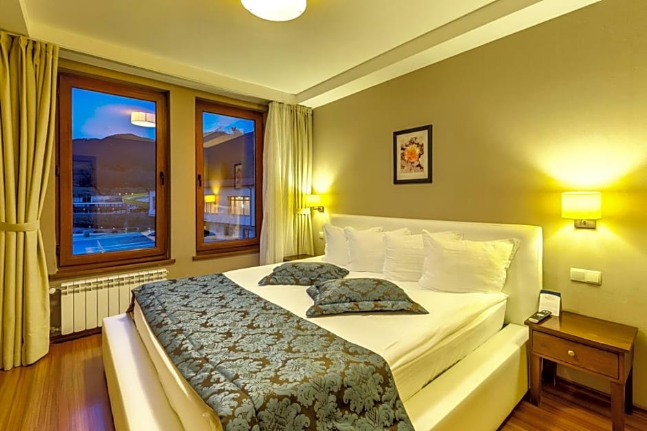 Dive directly into fun with the hotel's fantastic featured amenities. Splash around in the free water park, hit the slopes for some exhilarating skiing, or unwind at the indulgent spa. Families will appreciate the complimentary kids' club, while adults can enjoy the plethora of wellness packages designed to rejuvenate. And don't sleep on the outdoor and indoor swimming pools – perfect for basking under the sun or enjoying a refreshing swim after a day of adventure. With great reviews from 881 guests, the Regnum Bansko provides a serene atmosphere, excellent service, and breathtaking mountain views that are bound to keep you returning!