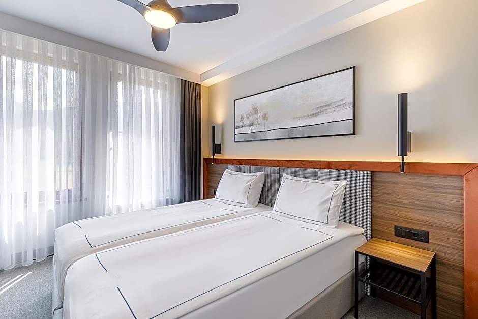 Featuring air conditioning, a living room with a seating area and a flat-screen TV with cable and satellite channels. The private balcony reveals scenic views to Pirin mountain. The suite features 1 big bathroom or 2 separate bathrooms with free toiletries, a shower cabin and a bathtub. Complimentary fruits and water are served one-time upon arrival. Please note that this suite is fitted with either a king-size bed or 2 single beds. If you arrive with children, please inform the property about their number and age. You can use the Special Requests box when booking or contact the property directly.